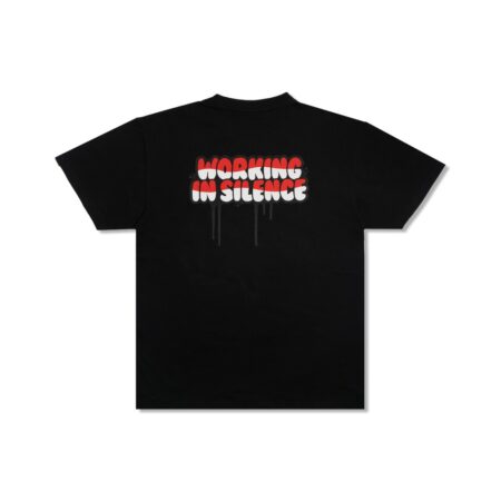 Black T-Shirt with Omerta on the chest and the statement WORKING IN SILENCE dripping down the back.