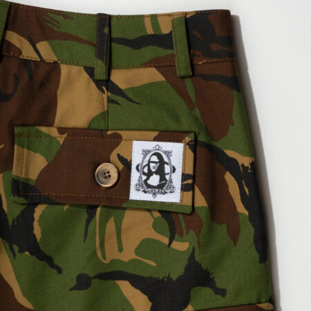 The camo pattern won’t hide you it puts you out front. Clean lines, sturdy fabric, and room for every essential without tying up your hands. Deep cargo flap pockets sit on the sides, while two buttoned back pockets conceal a small embroidered Mona Lisa emblem. A discreet nod to those who know the Code.